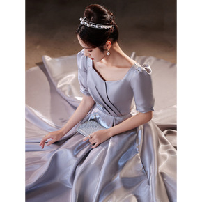 缎面轻婚纱小个子礼服名媛平时可穿领证登记小白裙夏季...