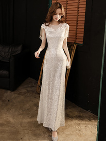 纯白色旗袍晚小礼服2020新款女平时可穿气质宴会伴...