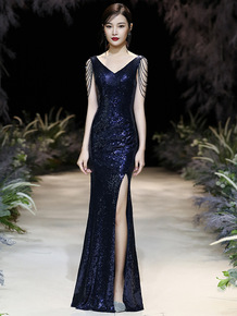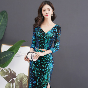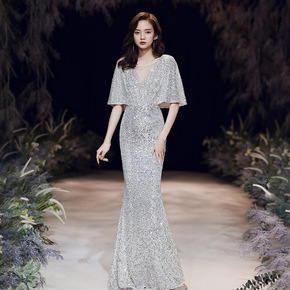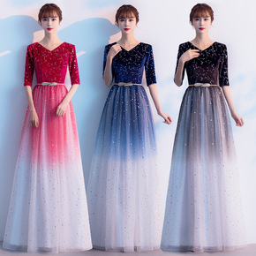 宴会晚礼服女2021秋季新款星空年会主持人礼服舞蹈...