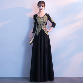 宴会晚礼服2021新款秋韩式敬酒服修身长款主持人年...