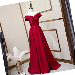 一字肩新娘敬酒服2021秋季新款公司宴会晚礼服年会...