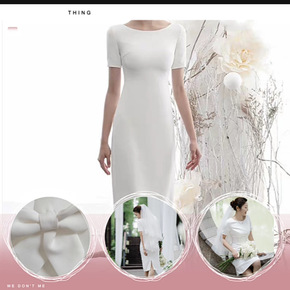 小个子宴会晚礼服女白色短款蕾丝连衣裙名媛生日平时可...
