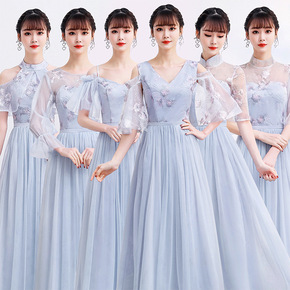 伴娘服长款2020新款显瘦韩版一字肩伴娘团晚礼服毕...