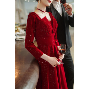 敬酒服新娘2021新款秋冬长袖高端小红裙订婚结婚晚...