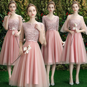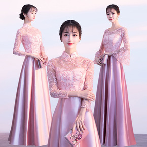 伴娘服2021新款夏季粉色中长款气质主持宴会生日派...