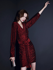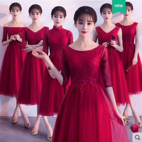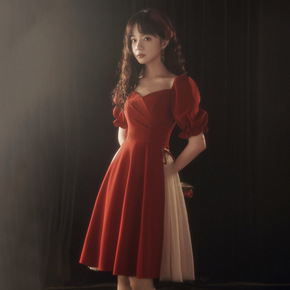 酒红色轻奢小晚礼服名媛生日宴会礼裙气质性感派对连衣...