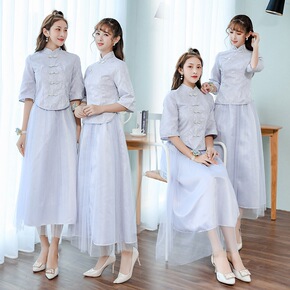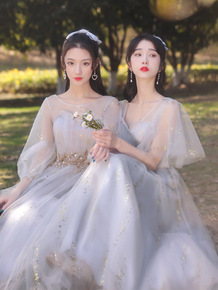 伴娘礼服女2020新款韩版姐妹团伴娘服长款灰色显瘦...