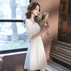 小晚礼服连衣裙女小众领证白裙约会气质宴会平时可穿裙...