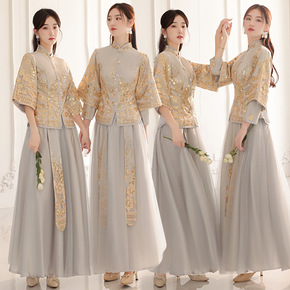 中式伴娘服秋冬创禾中长风秀禾姐妹团国袖婚礼复古20...