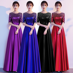 丝绒晚礼服女2021新款宴会合唱团指挥演出服长裙平...