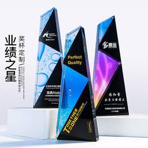水晶奖杯奖牌彩色冰山创意制作现货比赛定制定做优秀员...