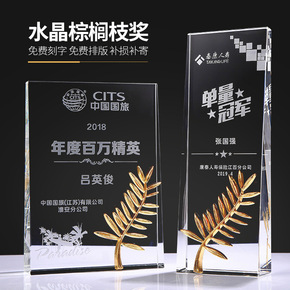 水晶授权牌定制奖杯奖牌定做刻字年会牌匾代理经销商加...