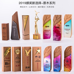 实木质水晶奖杯创意木头彩印奖牌制作企业团队公司年会...