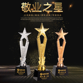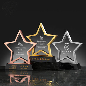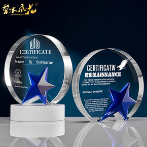 梦幻五角星奖杯制作授权牌授权书创意水晶奖杯公司年会...