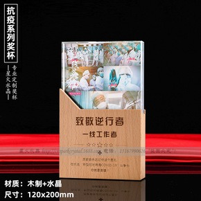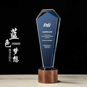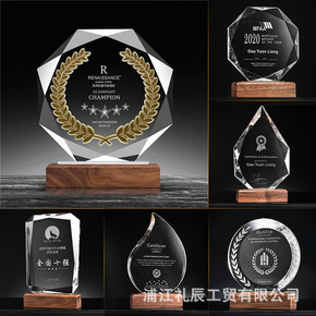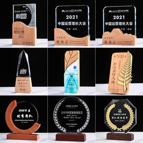 实木水晶奖杯奖牌创意彩印高档大气优秀员工企业年会颁...