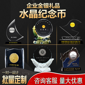 水晶纪念币奖杯定制金银币定做金属纪念品刻字优秀员工...