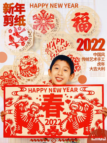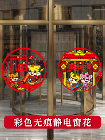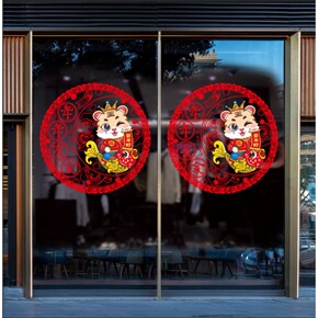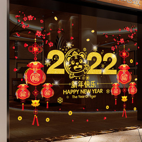 2022新年装饰玻璃橱窗贴纸商场店铺虎年春节场景布...