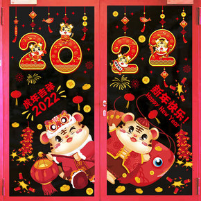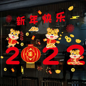 元旦贴画2022虎年新年春节过年装饰品布置店铺玻璃...