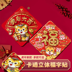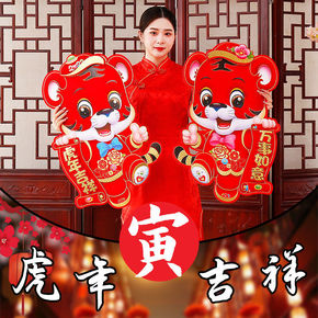 年画墙画2022虎年立体生肖门贴创意卡通字对联春节...