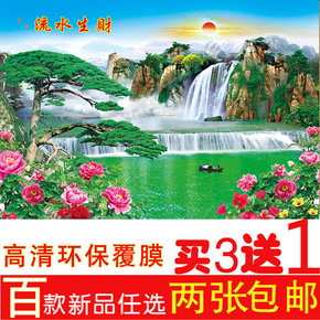 迎客松风景画客厅装饰画墙画山水旭日东升聚宝盆年画墙...