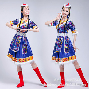 新款藏族水袖舞蹈演出服装女藏族卓玛民族衣服藏式广场...