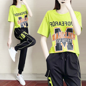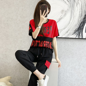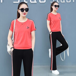 中年妈妈休闲运动套装女夏季新款减龄短袖直筒阔腿裤广...