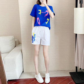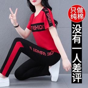 纯棉运动套装女夏季2022新款显瘦时尚妈妈洋气广场...