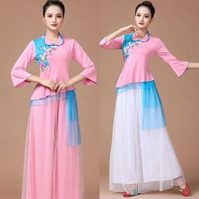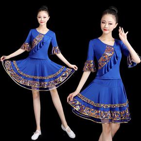 古典舞演出服新款民族风广场舞套装刺绣上衣中袖舞台表...