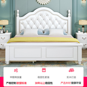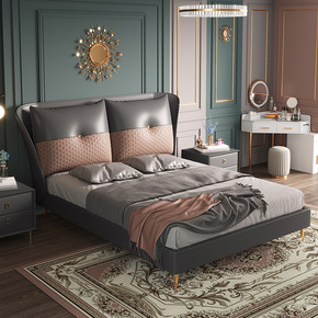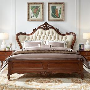 格澜帝尔美式实木真皮床主卧轻奢1.8米双人婚床欧式...
