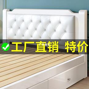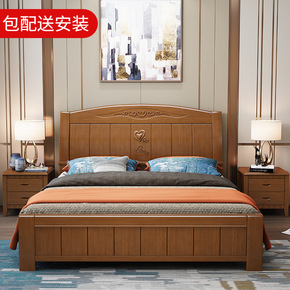 实木床1.5米经济型简易橡木租房床主卧床高箱储物1...