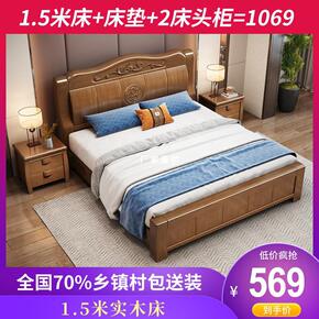 实木床1.8米成人主卧双人床经济型1.5家用1m简...