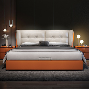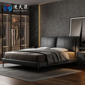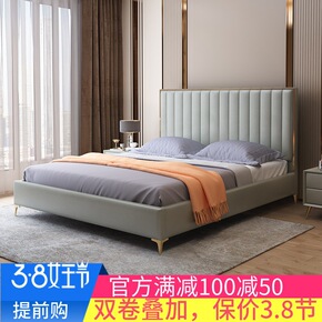 轻奢皮床榻榻米主卧皮艺床轻奢现代时尚高档创意高端奢...