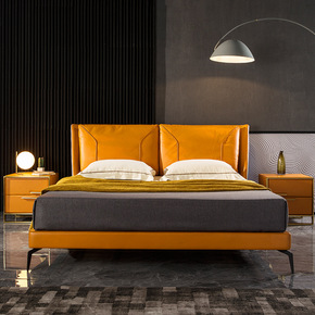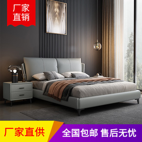 婚床ins真皮米简约网红皮床意式高档主卧北欧后现代...