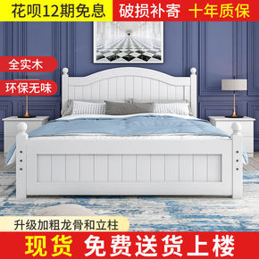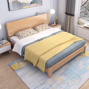 床 现代简约实木双人1.8米加厚实木床简易北欧主卧...