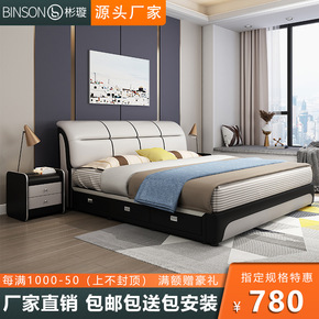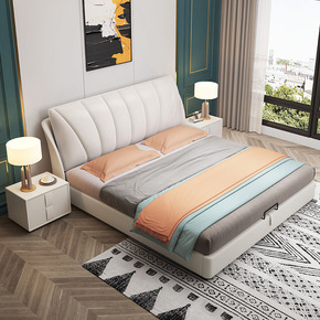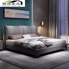 真皮床1.8米科技布艺1.5m简约现代双人床轻奢主...