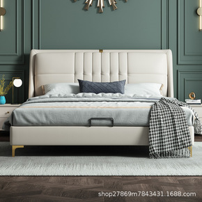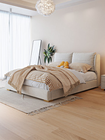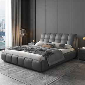 真皮床主卧现代简约大床侘寂风小户型婚床极简软包床轻...