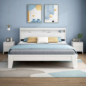 白色实木床1.8米双人床现代简约轻奢1.5m主卧经...