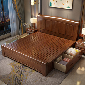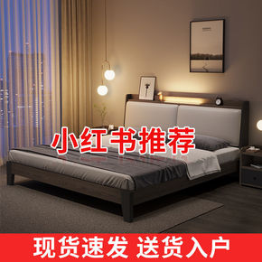 床实木现代简约1.5米双人床主卧出租房家用1.8经...