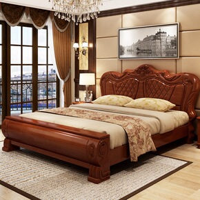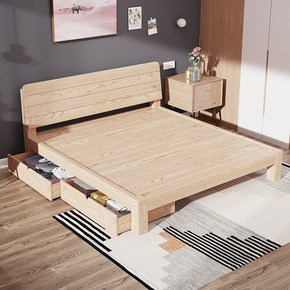 实木床现代简约双人1.8米主卧1.2经济型出租房简...