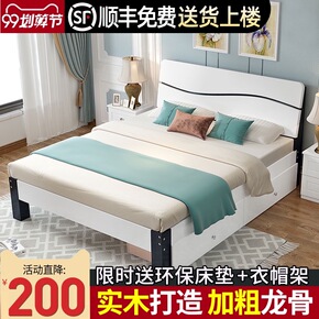 床实木现代简约1.5米双人床主卧1.8米出租房家用...