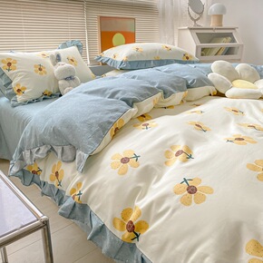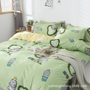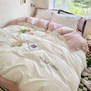 ins风水洗棉床上用品四件套被套床单人学生宿舍被子...