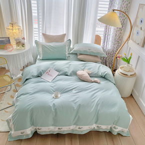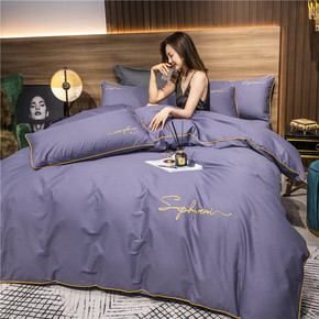 北欧轻奢全棉水洗棉四件套纯棉100简约刺绣床单1....