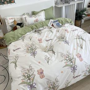 ins风全棉四件套 春夏季简约森系碎花植物花卉 纯...