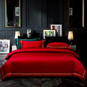 100支简约婚庆新疆棉四件套欧式大红色结婚床上用品...