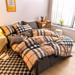 2022夏凉被四件套跨境批发夏季水洗棉亲肤宿舍格子...