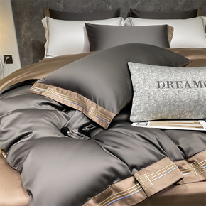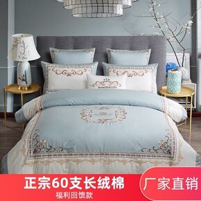 美式四件套全棉纯棉60支贡缎长绒棉刺绣酒店拼色1....