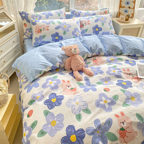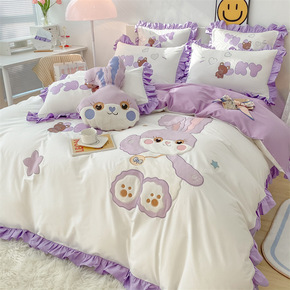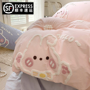 可爱卡通兔子100支三四件套全棉纯棉公主风女孩被套...