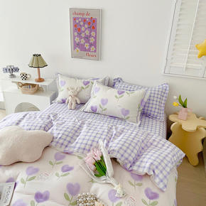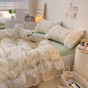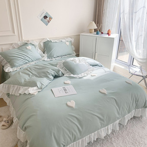 双层纱纯棉四件套公主风田园网红小被套小清新韩式棉床...