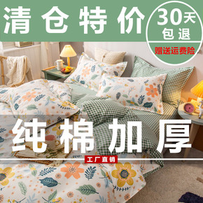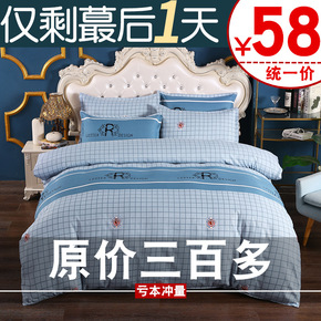床上被套四件套纯棉全棉100三件套学生宿舍单人床单...