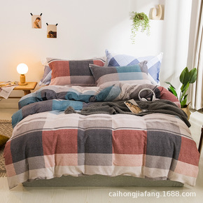 纯色纯棉床笠四件套磨毛三件套1.5网红全棉床单被套...
